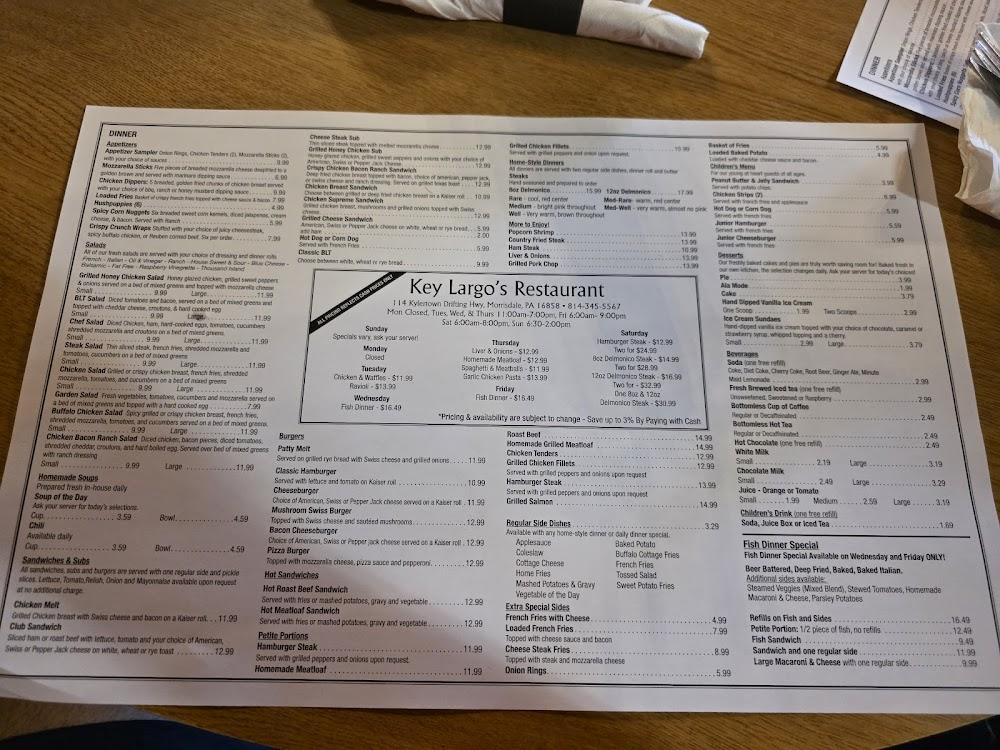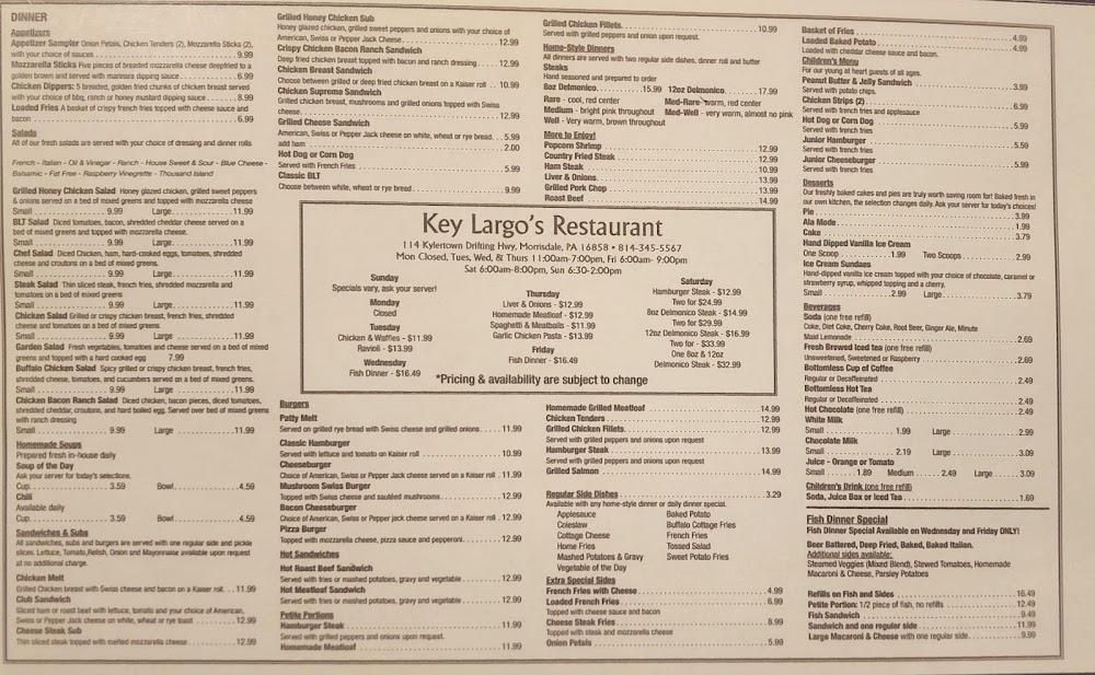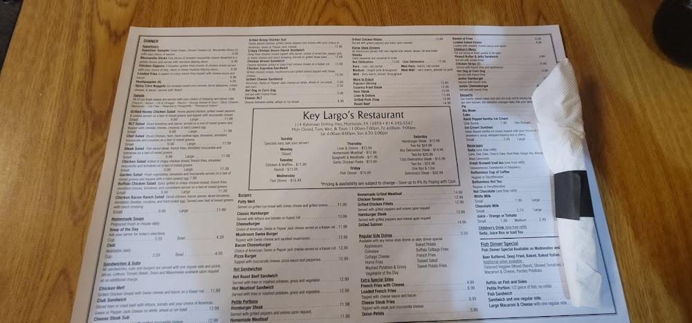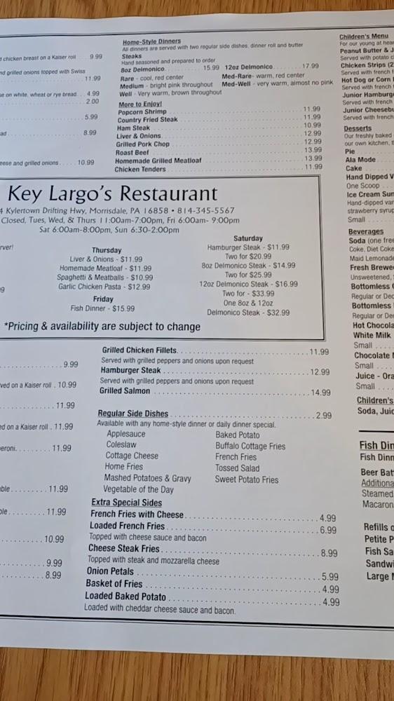 Key Largo's menu is a treasure trove of comfort food and culinary delights. The diverse offerings include everything from appetizers to home-style dinners that showcase rich, satisfying flavors. Favorites like country-fried steak and ham steak dinners are huge hits among locals.